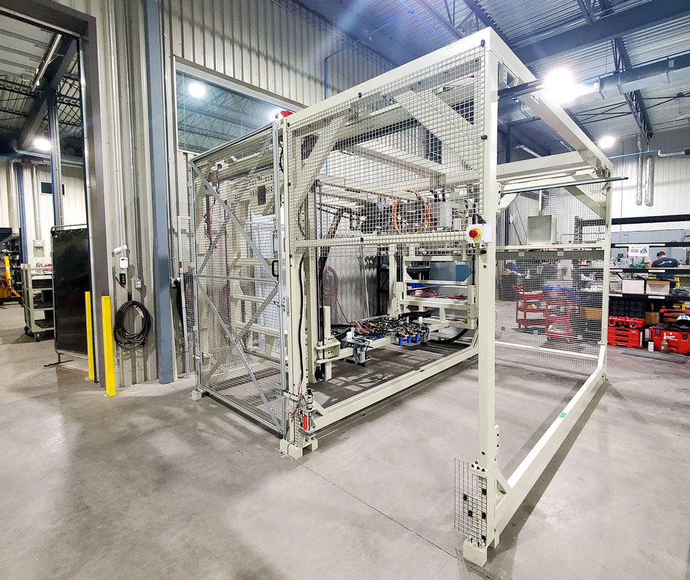 • Mouvement de positionnement 3 axes, incluant 2 lecteurs laser pour le système de ventouse permettant au système de se positionner automatiquement selon l’emplacement des embossures sur les panneaux. Ce même système gère les tolérances des panneaux pour leur positionnement mais aussi sur l’épaisseur.